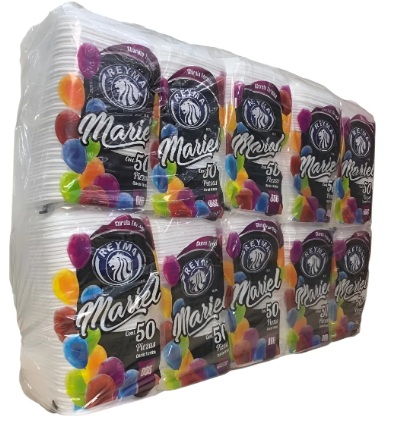 Su compra Incluye: 500 Charolas Cuadradas mariel 066 marca reyma, en 10 paquetes de 50 pzs.