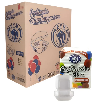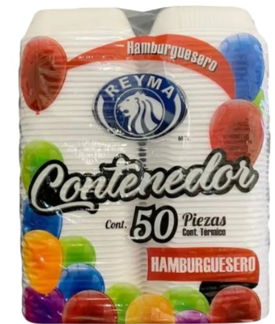 Su compra Incluye : 1 Caja de Contenedor Termico Hamburguesero con 500 Pzs , en 10 Paquetes de 50 Piezas c/u. LA IMAGEN QUE SE MUESTRA ES ILUSTRUTIVA.